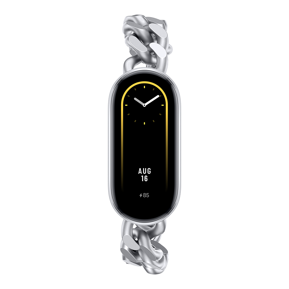 Das Armband zeichnet sich durch sein klassisches und gleichzeitig modernes Design aus, das in jeder Situation eine gute Figur macht. Die silberne Farbe und die kubanischen Glieder verleihen deinem Xiaomi Smart Band 9 eine zeitlose Eleganz, die sowohl zu formellen als auch zu lässigen Outfits passt.