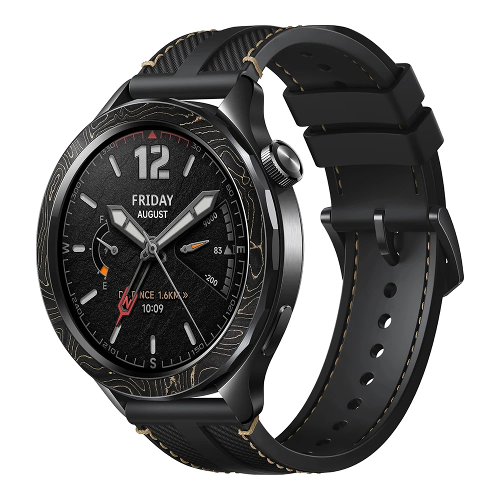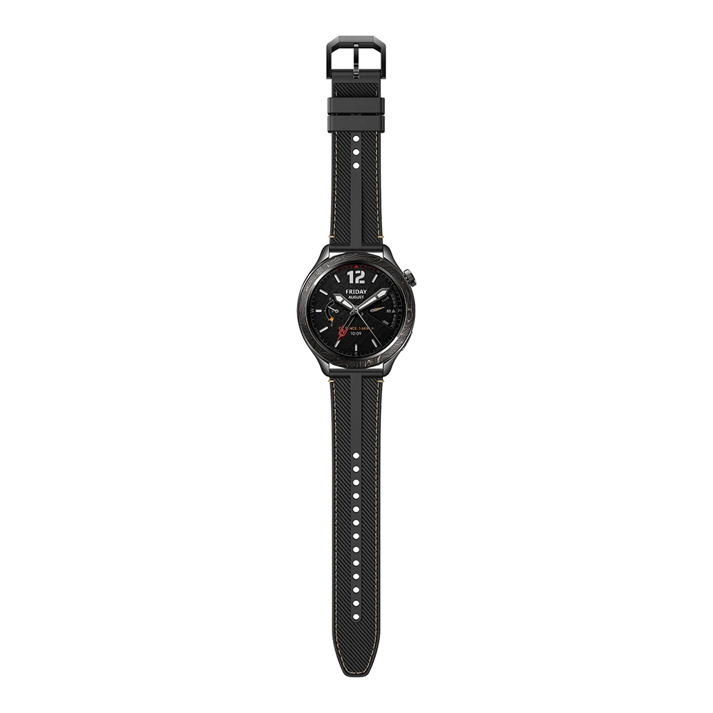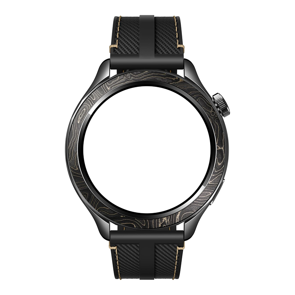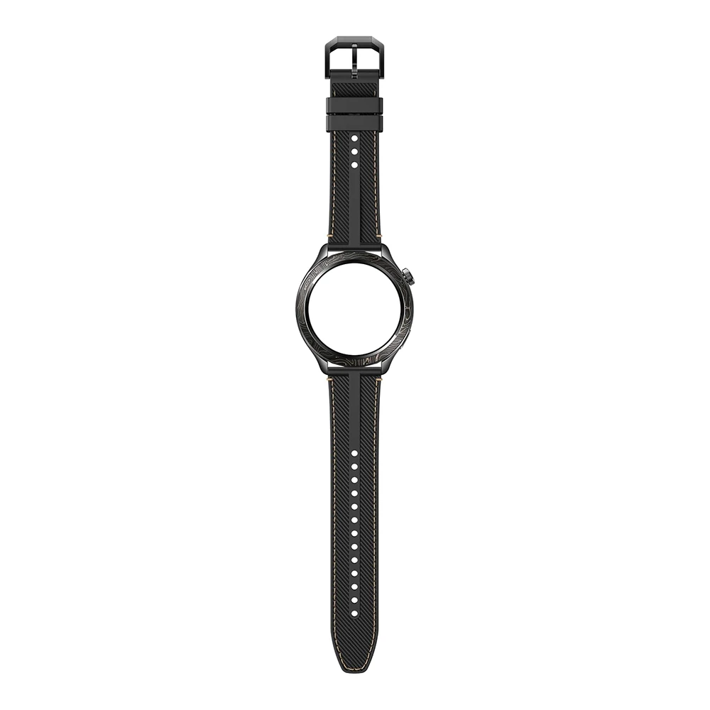 Die Lünette aus Carbonfaser in der Farbe Mitternachtsschwarz vereint Leichtigkeit und Widerstandsfähigkeit für einen sportlich-eleganten Look. Das Set beinhaltet zudem ein hochwertiges Armband aus Fluororubber und Nylon, das sowohl robust als auch angenehm zu tragen ist – ideal für intensive Workouts und den Alltag.