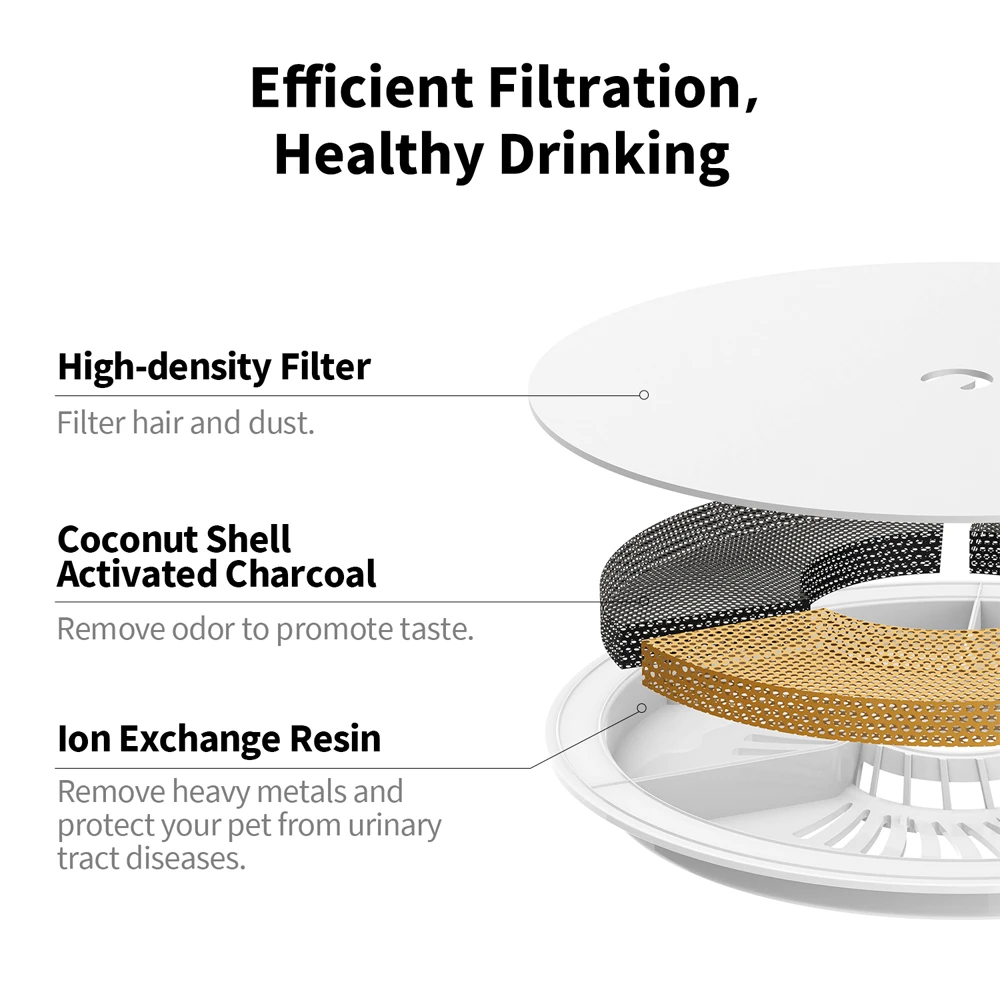 Unsere Filter 3.0 sind das Upgrade, auf das du gewartet hast, um sicherzustellen, dass dein Haustier stets frisches und sauberes Wasser trinkt. Hergestellt aus porösem, schwach saurem Ionenaustauschharz und Aktivkohle aus Kokosnussschalen mit grossem Durchmesser, bieten diese Filter eine um 150% erhöhte Filterkapazität. Unsere Filter 3.0 sind in der Lage, schädliche Chemikalien im ungefilterten Wasser zu eliminieren, und tragen so dazu bei, dass dein Haustier gesund bleibt und Krankheiten des Harnsystems verhindert werden. Gib deinem pelzigen Freund das Beste und sorge dafür, dass er immer Zugang zu sauberem und gesundem Wasser hat.