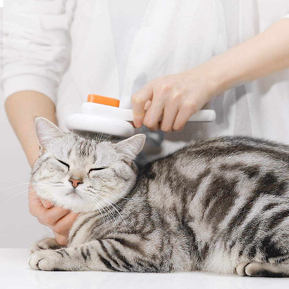 Nach dem Bürsten deines Haustiers genügt ein einfacher Klick, um die gebürsteten Haare von der Metallnadel zu trennen und sie dann mühelos abzuwischen. Die unkomplizierte Ein-Knopf-Reinigung spart Zeit und erleichtert die Pflegebürste von Tierhaaren.