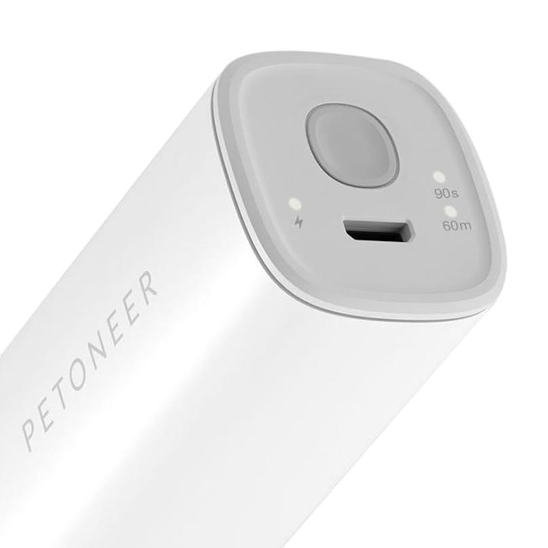 Der UV Sanitizing Pen von Petoneer besteht aus hochfestem Polyacrylnitril-Material. Der integrierte Herstellungsprozess verbindet und versiegelt die verschiedenen Teile. Das schlanke weisse Design verleiht ihm eine künstlerische Note. Die abgerundete quadratische Form verhindert effektiv ein Herunterrollen.