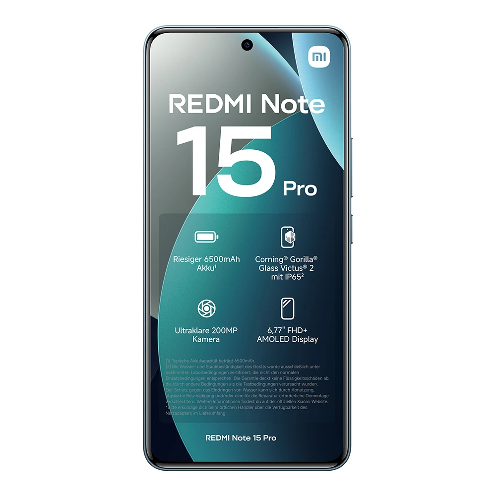 | Lieferumfang: | 1x Redmi Note 15 Pro, 1x USB-C-Kabel, 1x SIM-Auswurftool, 1x Schutzhülle, 1x Kurzanleitung |