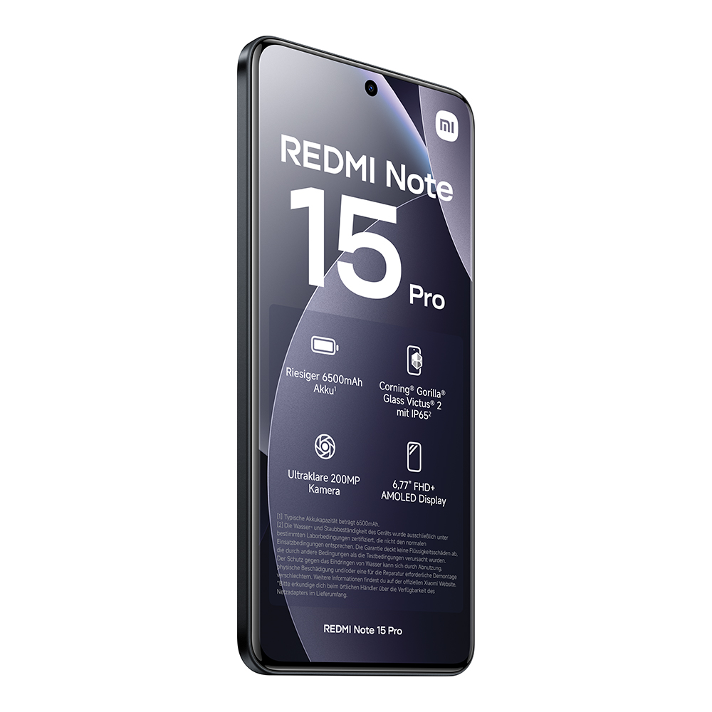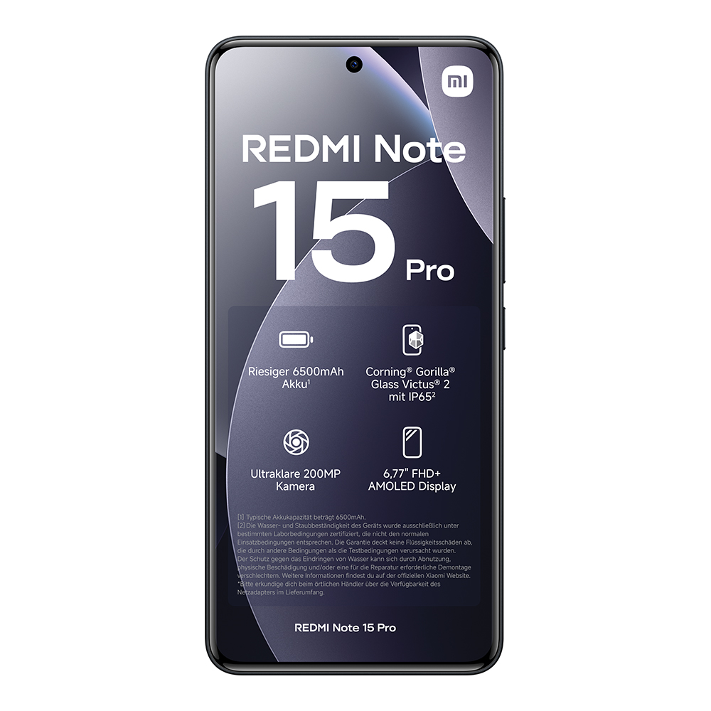 | Lieferumfang: | 1x Redmi Note 15 Pro, 1x USB-C-Kabel, 1x SIM-Auswurftool, 1x Schutzhülle, 1x Kurzanleitung |