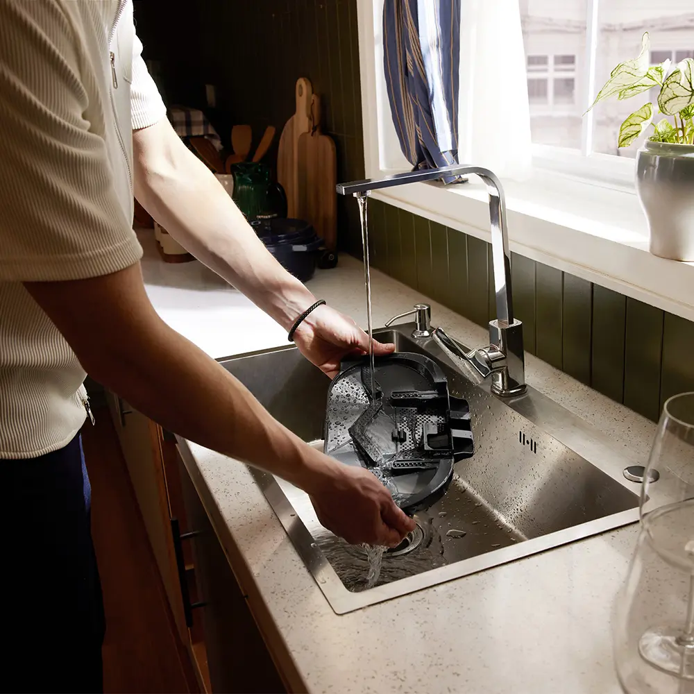 Die Multifunktions-Dockingstation übernimmt eine Reihe von Reinigungs- und Wartungsprozessen. Sie wäscht die Mop-Pads bei Raumtemperatur, trocknet sie mit warmer Luft, leert den Staubbehälter, füllt automatisch Wasser nach und verfügt über eine abnehmbare Basis, die die Reinigung erleichtert. Ladezeiten fallen reduziert aus – laut Hersteller ist eine bis zu 30 % schnellere Aufladung möglich – und für eine stromsparende Nutzung lässt sich das Aufladen ausserhalb von Spitzenlastzeiten planen.