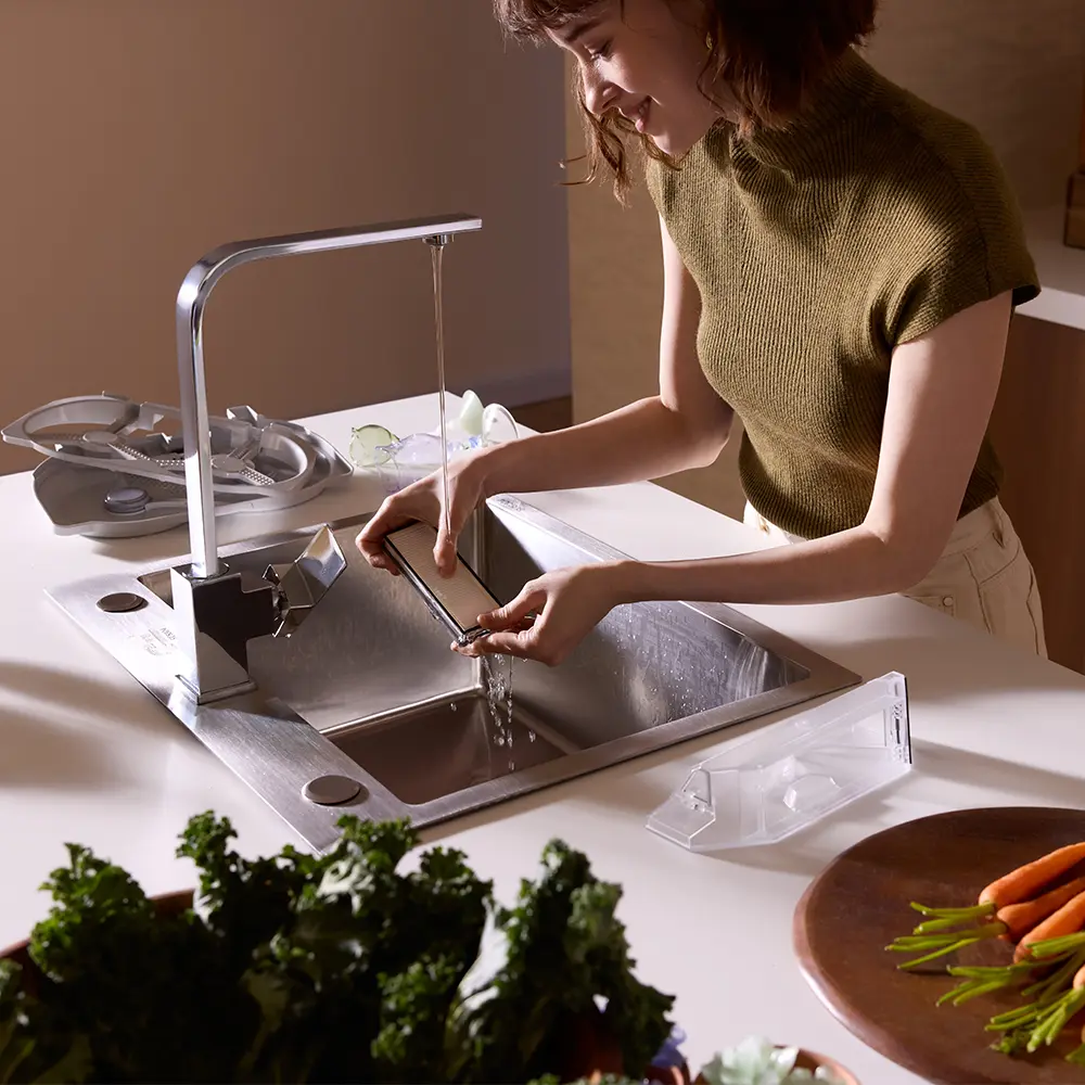 Die All-In-One Dockingstation übernimmt zentrale Pflegeprozesse: Sie wäscht die Mopps mit bis zu 75 °C heissem Wasser, trocknet sie per Warmluft und entleert den Staubbehälter automatisch. Zudem erfolgt bei Bedarf eine Auffüllung des Wasserbehälters. Diese selbstständige, intelligente Basis erleichtert den Alltag und garantiert hygienische Reinigungsvorgänge ohne manuelles Eingreifen.