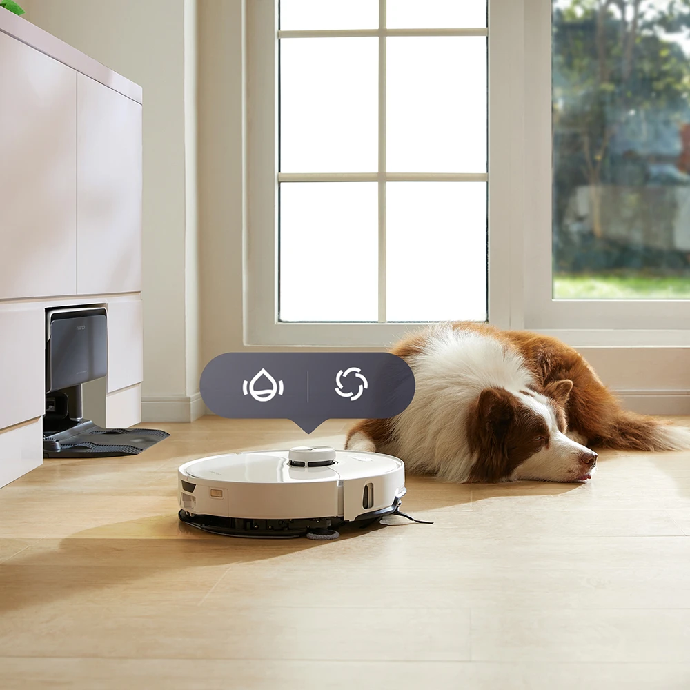 Zur Orientierung nutzt das Gerät PreciSense LiDAR für genaue Karten und effiziente Fahrwege. Reactive AI 2.0 kombiniert 3D-Strukturlicht und eine RGB-Kamera, um Objekte zu erkennen und Hindernissen wie Schuhen, Haustierexkrementen oder Spiegeln auszuweichen. Weitere Features sind eine ausfahrbare Seitenbürste (FlexiArm Design) für schwer erreichbare Ecken, eine rotierende Kantenmopp-Einheit (Extra Edge Mopping) mit hoher Drehzahl, und das Carpet Boost+ System, das auf Teppichen die Saugleistung erhöht und Haare zuverlässig entfernt.