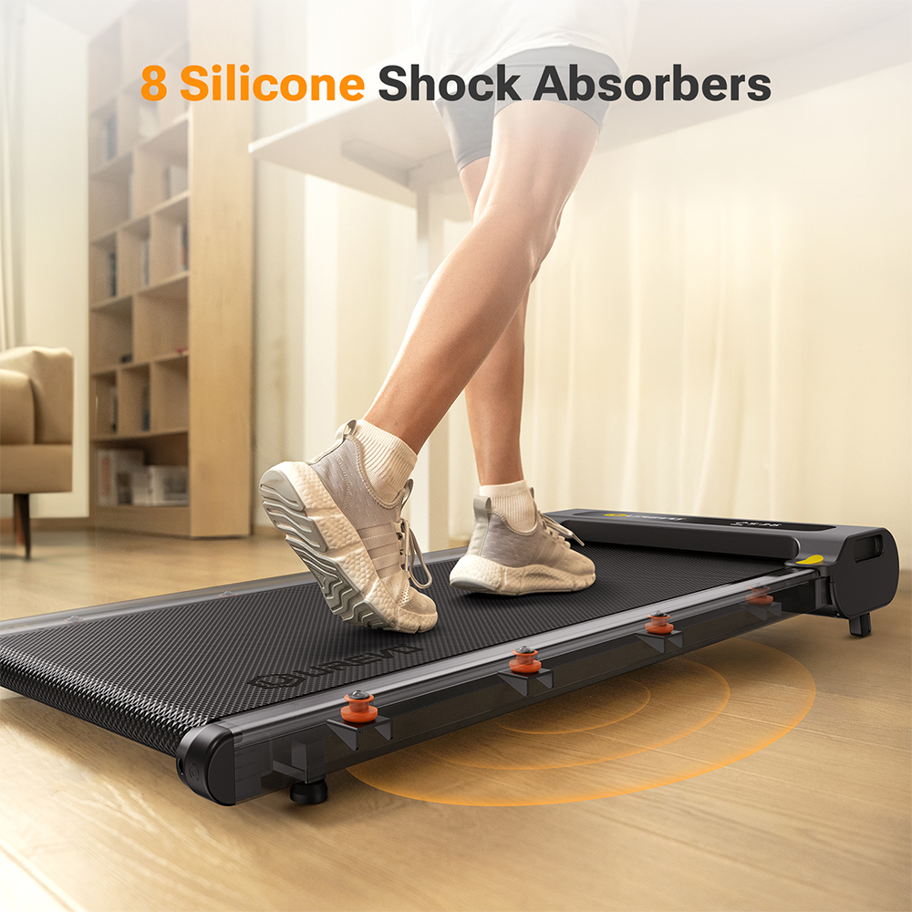 Acht Silikonstossdämpfer in Kombination mit einem fünfschichtigen Laufgurt dämpfen jeden Schritt wirkungsvoll ab und reduzieren die Belastung auf Knie und Gelenke. Durch dieses ausgeklügelte System bleibt der Geräuschpegel unter 40 Dezibel, wodurch ein ruhiges Training gewährleistet ist, das Nachbarn und Familienangehörige nicht stört.