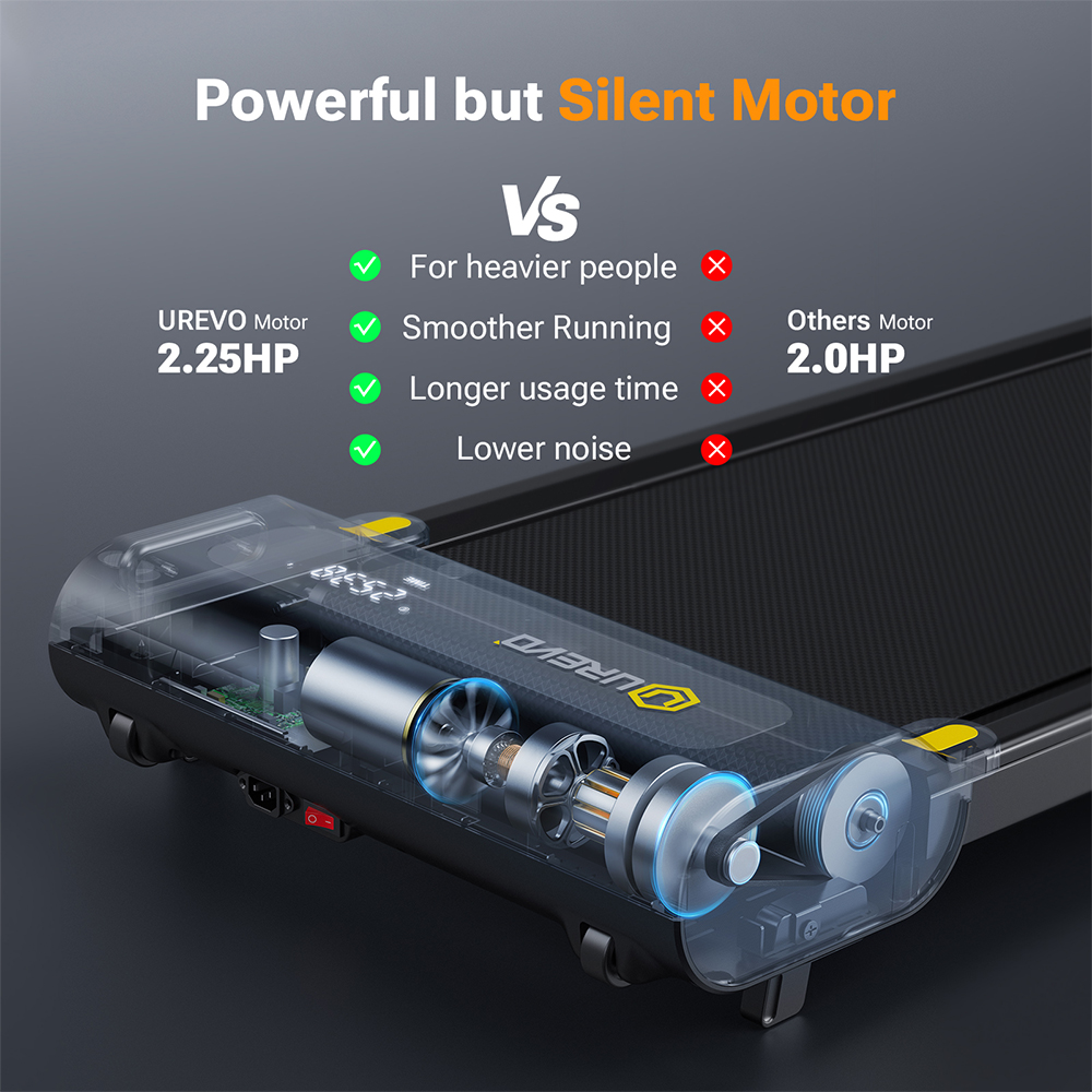 Der 2.25 PS starke Motor bietet ein Lauftempo zwischen 1 und 6 km/h und trägt Nutzer bis zu einem Gewicht von 120 Kilogramm. Sowohl schnelle Spaziergänge als auch leichtes Jogging lassen sich so komfortabel umsetzen. Durch die Kombination aus Motorleistung und Neigungsfunktion wird das Kalorienverbrennen besonders effektiv gestaltet.