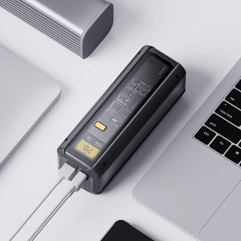 Die Power Bank liefert eine beeindruckende Einzellausgangsleistung von bis zu 140W über den USB-C1-Port, was selbst den Anforderungen eines MacBook Pro gerecht wird. Gleichzeitig ermöglicht ein intelligentes Lastverteilungssystem eine kombinierte Spitzenleistung von 65W, 27W und 120W an drei Ports gleichzeitig. Anhand der Ladezeiten demonstriert sich die Schnellladefunktion eindrucksvoll: So erreicht beispielsweise ein Xiaomi 14T Pro in ca. 30 Minuten 10 % Ladung, während auch das Aufladen eines MacBook Pro in nur 30 Minuten signifikante Fortschritte macht. Es werden zahlreiche Smartphones, Laptops, Tablets sowie Zubehörgeräte unterstützt.