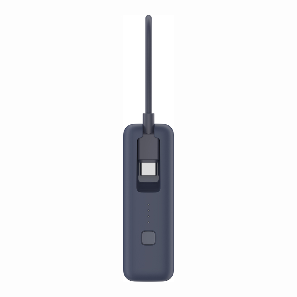 Die Power Bank bietet drei Ausgänge: ein USB-C-Anschluss, ein integriertes USB-C-Kabel und ein USB-A-Anschluss. Diese ermöglichen das gleichzeitige Laden von bis zu drei Geräten, ohne Kompromisse bei der Leistung einzugehen. Das integrierte Kabel sorgt für zusätzlichen Komfort und macht zusätzliche Kabel überflüssig.