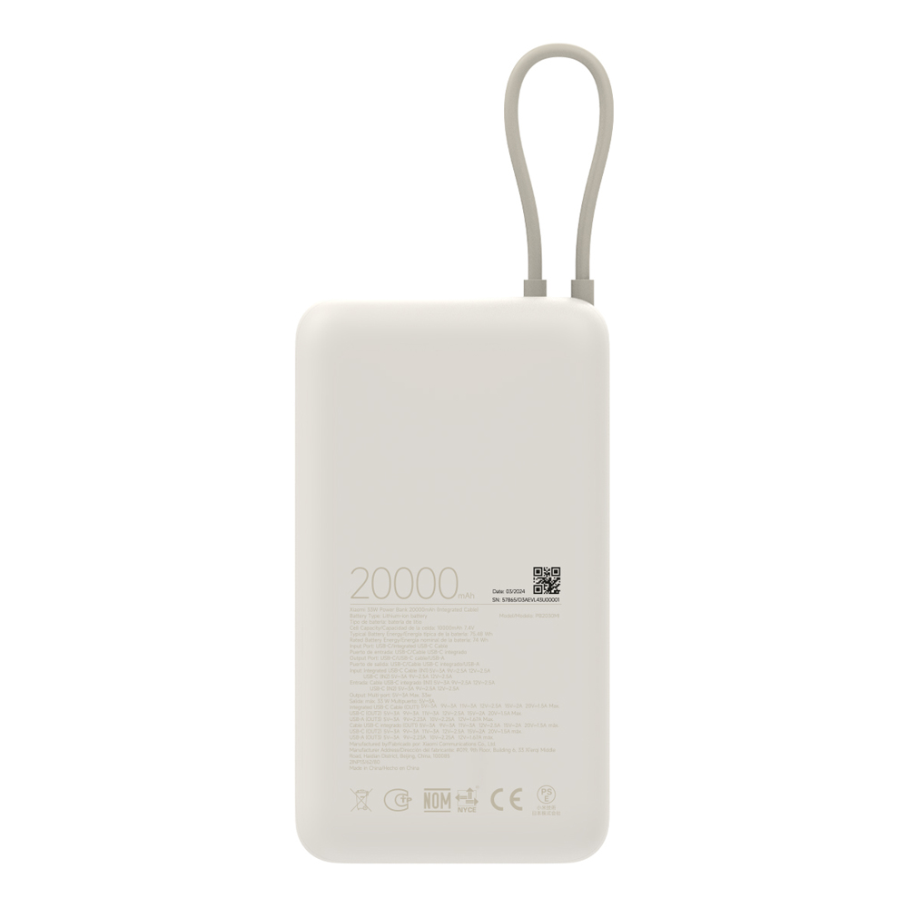 Xiaomi 33W Power Bank 20000mAh (Integriertes Kabel) | Beige