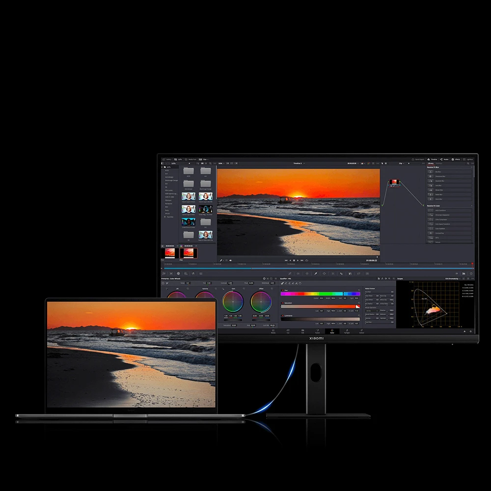 Werkseitig kalibriert erreicht der Monitor eine durchschnittliche dE‑Abweichung von unter 1, wodurch Farbdifferenzen für das menschliche Auge nahezu nicht wahrnehmbar sind. Die abgedeckten Farbräume von 100 percent sRGB und 95 percent DCI‑P3 ermöglichen die Darstellung von über 1.07 Milliarden Farben in 10‑Bit‑Tiefe (8‑Bit + FRC). Für Profis in den Bereichen Grafikdesign, Fotobearbeitung und Videoproduktion garantiert der A27Ui damit eine herausragende Farbtreue und stimmt verschiedene Xiaomi‑ und Redmi‑Geräte bei Mehrfachbildschirmen farblich präzise aufeinander ab.