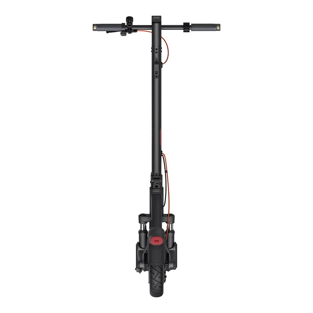 Der Scooter setzt auf schlauchlose 12-Zoll-Reifen, die insbesondere auf unebenem Untergrund eine verbesserte Bodenhaftung und Ruhe beim Fahren bieten. Vorne arbeitet eine Doppelfederstossdämpfung mit einem maximalen Hub von ca. 30 mm, die Vibrationen und Stösse wirksam reduziert. Der vergrösserte Trittbrettbereich und ein höher gesetzter Lenker gewährleisten eine komfortablere Haltung auch für grössere Fahrerinnen und Fahrer, und der verstärkte Karbonstahlrahmen trägt bis zu 120 kg. Dank dieses Designs eignet sich der Scooter nicht nur für das tägliche Pendeln, sondern auch für längere Fahrten über verschiedene Untergründe hinweg.
