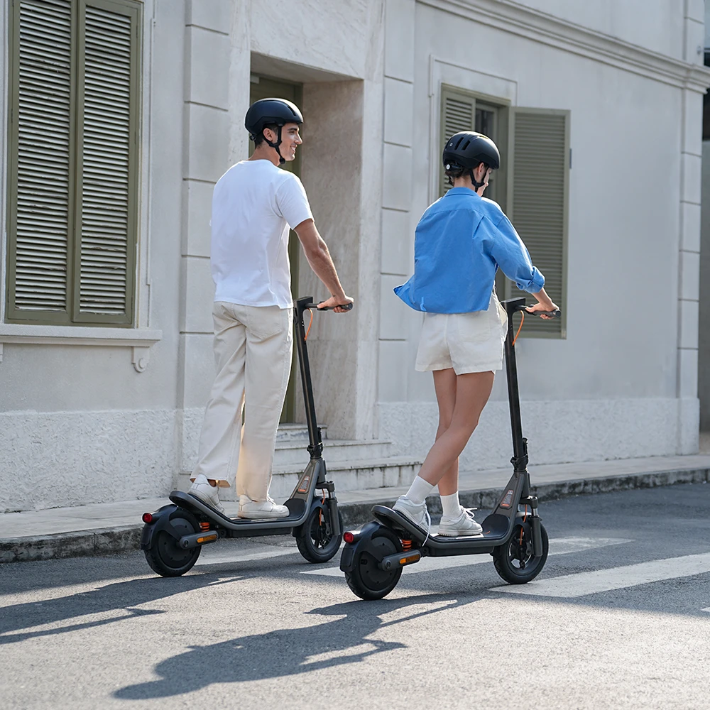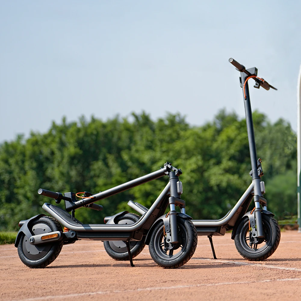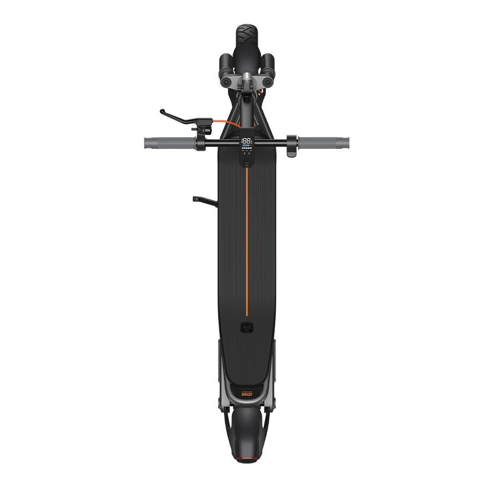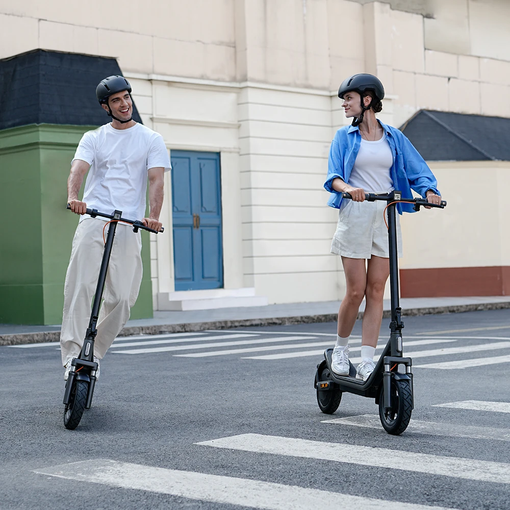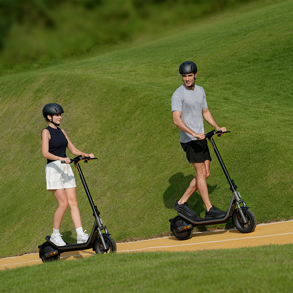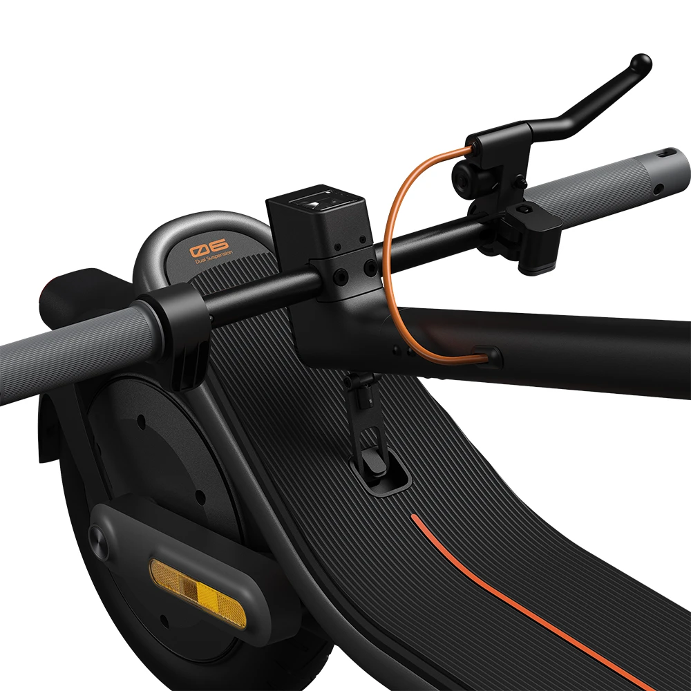 Ausgestattet mit 12-Zoll-Tubeless-Reifen bietet der E-Scooter 6 eine deutlich erhöhte Laufruhe und Stabilität. Die grossen Reifen in Kombination mit einer vergrösserten Bodenfreiheit und erhöhter Achshöhe verbessern die Kontrolle auf unebenen Untergründen und erleichtern das Überfahren von Hindernissen. Unebenheiten, Bordsteinkanten oder wechselnde Fahrbahnbeläge lassen sich souverän meistern, ohne den Fahrkomfort zu beeinträchtigen.