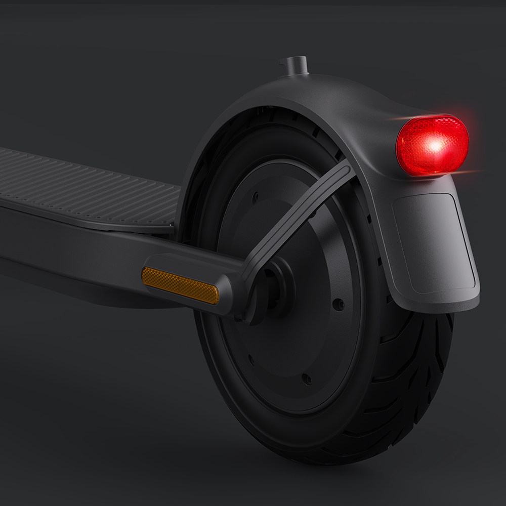 Für zusätzliche Sicherheit verfügt der Scooter über vorinstallierte Blinker, die beim Abbiegen andere Verkehrsteilnehmer warnen, sowie ein automatisch blinkendes Rücklicht, das beim Bremsen aktiviert wird.