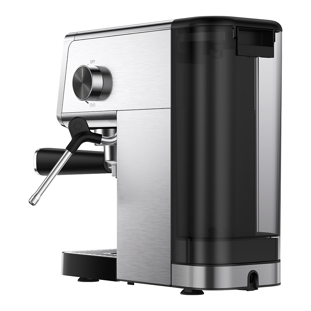 Mit einer 20-Bar-Pumpe gewährleistet die Maschine eine stabile Extraktion, die in der ausgewogenen Freisetzung einer reichen Crema resultiert. Das Gerät weist eine Breite von lediglich 14 cm auf und benötigt weniger als 0.1 Quadratmeter, wodurch es sich problemlos in kleine Räume einfügt – sei es am Schreibtisch, in der Küche oder im Wohnbereich.