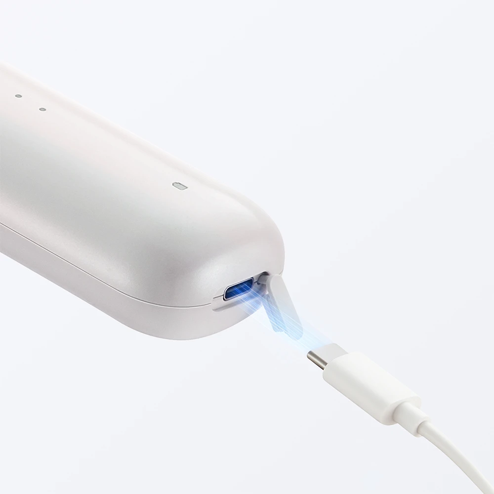 Das Gerät besticht durch sein kabelloses Design, das eine Nutzung jederzeit und überall ermöglicht, ohne an Steckdosen gebunden zu sein. Mit einem Gewicht von nur 269 g liegt die Bürste angenehm in der Hand und lässt sich einfach transportieren. Eine One-Touch-Verriegelung verhindert unbeabsichtigtes Einschalten während des Transports oder in Taschen.