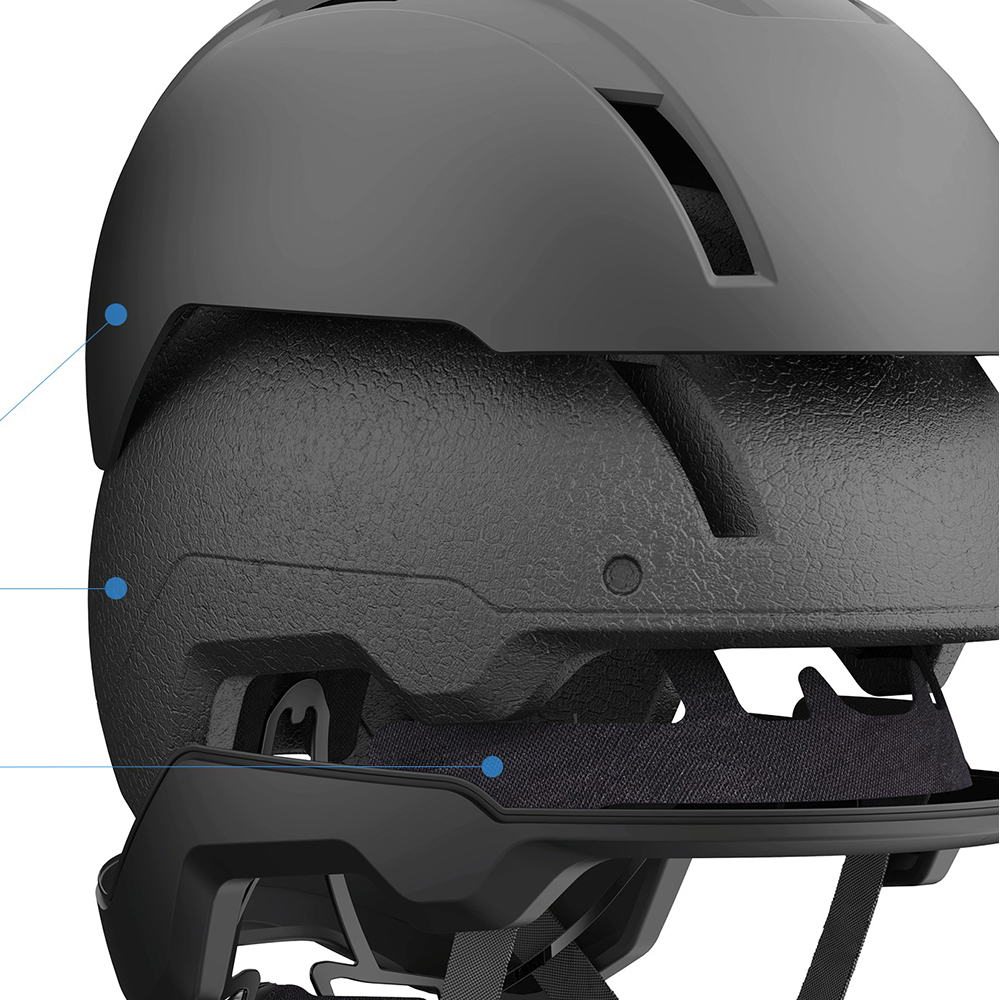 Der Helm basiert auf einer dualen Schalenkonstruktion: Eine äussere PC-Hülle sorgt für hohe Schlagfestigkeit, während die innere EPS-Schaumstoffschicht Stösse effektiv absorbiert. Durch das integrierte Pressverfahren entsteht eine widerstandsfähige Einheit, die bei einem Gewicht von nur 280 Gramm (±15 Gramm) den Druck auf den Kopf reduziert und gleichzeitig eine zuverlässige Barriere gegen Aufprallkräfte bildet.