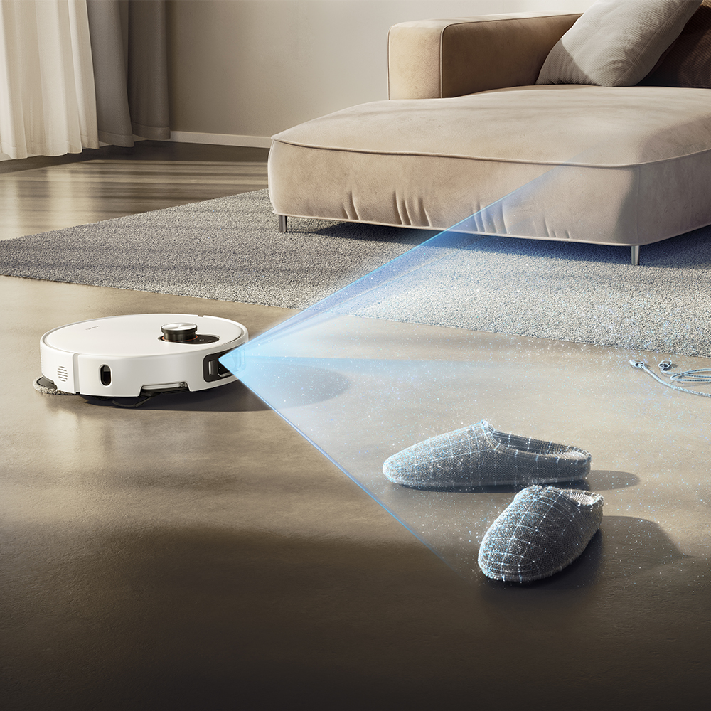 Der Roboter ist mit einem AI-Triple-Kamera-System ausgestattet, bestehend aus einer RGB-Kamera, zwei Infrarotkameras und einem 3D-Infrarot-Punktprojektor. Damit erkennt das Gerät in Echtzeit über 200 verschiedene Objekte, etwa Kabel, Socken oder Pflanzenranken, und passt seine Fahrroute entsprechend an. Für den Betrieb bei schwachem Licht sorgen zwei LED-Nachtsichtleuchten, die bei Bedarf automatisch aktiviert werden. Der 360°-Laser-Scan erstellt eine präzise Karte der Wohnumgebung, die das Planungssystem für optimierte Reinigungsrouten nutzt.