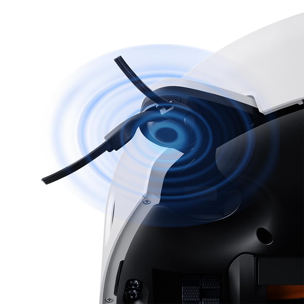 Der Saugroboter 5 erreicht eine maximale Luftleistung von 20000 Pa, wodurch hartnäckiger Schmutz, Staub, Partikel, Haare und Ablagerungen zuverlässig aufgenommen werden. Die Hauptbürste ist mit einem integrierten Trimmer versehen, der Haare direkt bei der Aufnahme kürzt, um Verfilzungen zu reduzieren. Die Seitenbürste ist gross dimensioniert und arbeitet mit Zentrifugalkraft, um Schmutz entlang von Wänden zu lösen. Durch die Dual-Extension-Technologie kann sowohl die Seitenbürste als auch das Mop-Modul bis auf 0 mm heranreichen, wodurch Kanten und Ecken besonders gründlich gereinigt werden.