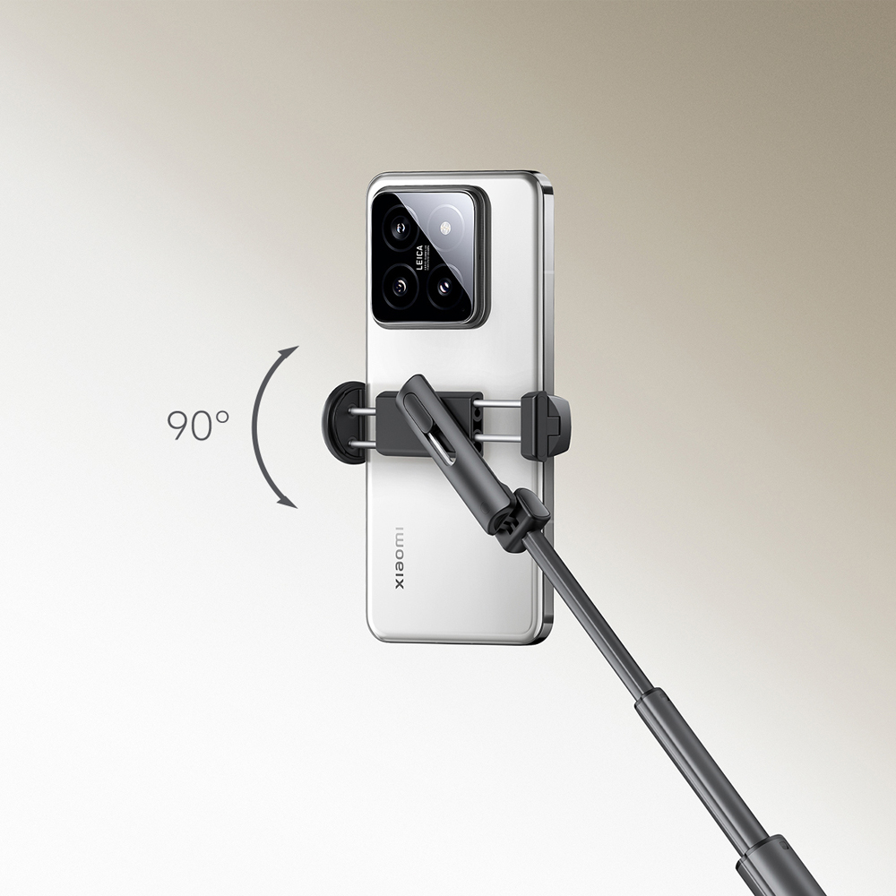 Der drehbare Smartphone-Clip kann um 90 Grad nach links und rechts bewegt werden und ist mit einer verstellbaren, rutschfesten Klemme ausgestattet, die verschiedene Smartphone-Modelle sicher hält. Dadurch lassen sich Aufnahmen im Hoch- und Querformat mit minimalem Aufwand realisieren. Die Kombination aus Selfie-Stick und Stativfunktion ermöglicht sowohl dynamische Selfies als auch stabile Aufnahmen in statischen Situationen.