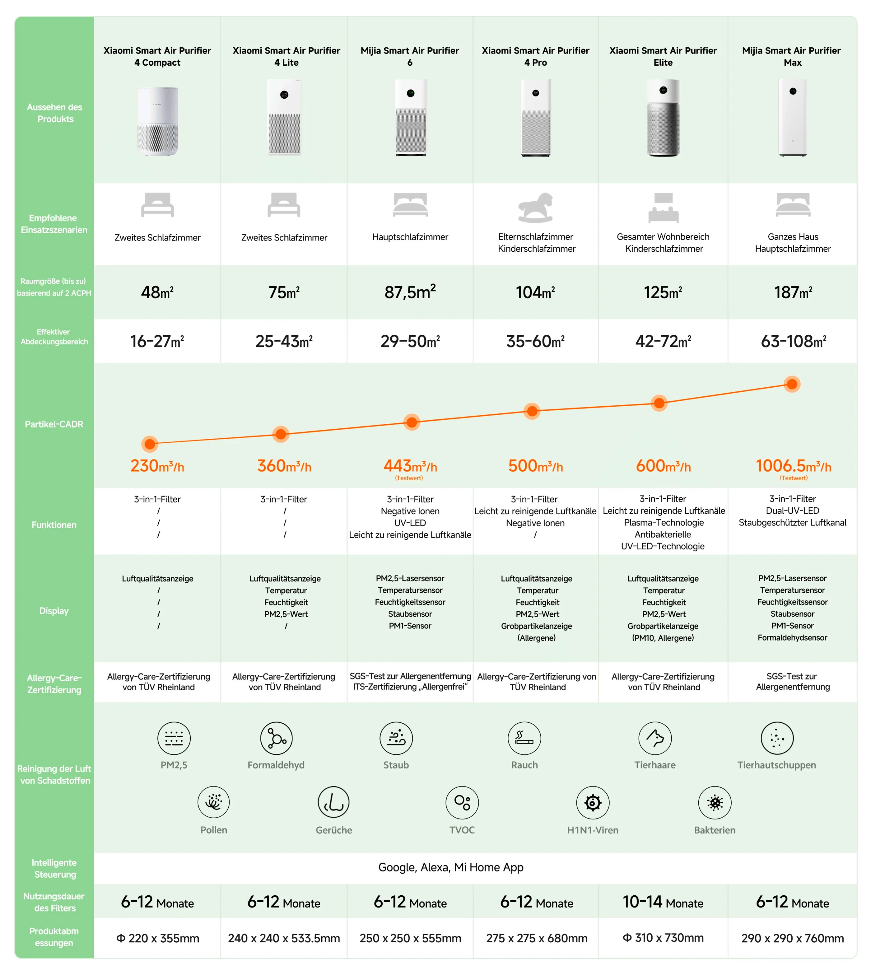 Der Xiaomi Saugroboter 5 stellt eine moderne und leistungsfähige Reinigungslösung dar, die Saug- und Wischfunktionen mit fortschrittlicher Sensortechnik kombiniert. Ausgestattet mit vielen Automatisierungsfeatures zielt dieses Modell darauf ab, hohe Effizienz und minimalen Aufwand in der täglichen Haushaltsreinigung zu ermöglichen. Intelligente Navigation und Hinderniserkennung Im Zentrum der Navigationstechnologie steht das dToF Smart Retractable Radar, das sich je nach Umgebung automatisch absenkt oder anhebt. In Bereichen mit niedrigen Durchfahrshöhen ab 9.5 cm fährt das Radar ein und ermöglicht damit das Reinigen unter Möbelstücken oder Sofas. In offenen Flächen hebt sich der Sensor wieder und erweitert das Erfassungsfeld für eine präzisere Kartierung. Unterstützt wird diese Technik durch das S-Cross Structured Light-System, das geringe Hindernisse millimetergenau erkennt und Kollisionen vermeidet. Ergänzt wird dies durch seitliche Sensorik sowie einen Laserscanner, um Routenplanung und Hinderniserkennung zu optimieren. Saug- und Bürstsystem Der Saugroboter 5 erreicht eine maximale Luftleistung von 20000 Pa, wodurch hartnäckiger Schmutz, Staub, Partikel, Haare und Ablagerungen zuverlässig aufgenommen werden. Die Hauptbürste ist mit einem integrierten Trimmer versehen, der Haare direkt bei der Aufnahme kürzt, um Verfilzungen zu reduzieren. Die Seitenbürste ist gross dimensioniert und arbeitet mit Zentrifugalkraft, um Schmutz entlang von Wänden zu lösen. Durch die Dual-Extension-Technologie kann sowohl die Seitenbürste als auch das Mop-Modul bis auf 0 mm heranreichen, wodurch Kanten und Ecken besonders gründlich gereinigt werden. Wischtechnik und Teppicherkennung Das Wischmodul verfügt über eine separate Wasserbehältersteuerung, um die Feuchtigkeitsabgabe präzise zu regulieren. Dank eines Ultraschallsensors erkennt das Gerät Teppiche und hebt die Wischfunktion automatisch um etwa 15 mm an, sodass Teppichflächen trocken bleiben. Verschiedene Reinigungsmodi sind für unterschiedliche Boden- und Teppichtypen verfügbar, um eine jeweils passende Strategie (nur Saugen, Wischen oder kombiniert) zu fahren. Selbstreinigungsstation und Wartungsreduktion Die stationäre Basis fungiert als All-in-One-Einheit mit automatischer Staubabsaugung, Wischreinigung und Trocknung. Sie wäscht die Mopps mit bis zu 80 °C heissem Wasser, entfernt Schmutz mechanisch mittels rotierender Schaberarme und trocknet in bis zu zwei Stunden mit Heissluft. Ein integrierter Staubbeutel mit 2.5 l Volumen sammelt aufgesaugten Schmutz, wodurch ein Wechsel nur etwa alle 75 Tage nötig ist. Der Frischwassertank fasst 4 l und ermöglicht grössere Reinigungsflächen, bevor eine Nachfüllung erforderlich wird. Energie, Steuerung und Zusatzfunktionen Die Hauptbatterie des Geräts besitzt eine nominale Kapazität von 5200 mAh, was eine Betriebsdauer von bis zu 140 Minuten (Kombimodus) ermöglicht. Das Dock verbraucht bis zu 530 W während Staubabsaugung, bis zu 1600 W während der Wischwäsche und ca. 85 W beim Trocknen und Laden. Die Steuerung erfolgt über die App Xiaomi Home, mit Funktionen wie zeitgesteuertem Start, virtuellen Sperrzonen, Multi-Raum-Karten und Sprachsteuerung über Alexa oder Google Assistant. Das System unterstützt OTA-Updates zur kontinuierlichen Erweiterung der Fähigkeiten. Weitere praktische Features sind eine Kindersperre, automatische Mop-Anhebung in Teppichbereichen, und eine intelligente Reflexion von Sperrzonen. Relevanz für den Alltag und Haushalte mit Tieren Besonders in Haushalten mit Haaranfälligkeit oder vielen Ecken und schmalen Bereichen eignet sich der Saugroboter 5 aufgrund seiner Anti-Verfilzungsstrategie, Kantenreinigung bis 0 mm und leistungsstarken Saugkraft. Die autonome Basisstation reduziert den Wartungsaufwand erheblich, und durch die Teppicherkennung bleibt empfindliche Textilflächen geschützt. Die Kombination aus präziser Navigation, automatischem Reinigungsmanagement und smarter Steuerung macht ihn zu einem Alltagshelfer mit hoher Nutzerfreundlichkeit.
